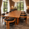 Chiếc bàn ăn không đơn thuần là nơi quây quần, mà là tâm điểm của một không gian sống hiện đại, nơi thiên nhiên được thổi hồn vào từng đường vân gỗ, nơi sự tối giản tỏa ra vẻ sang trọng đầy tinh tế.