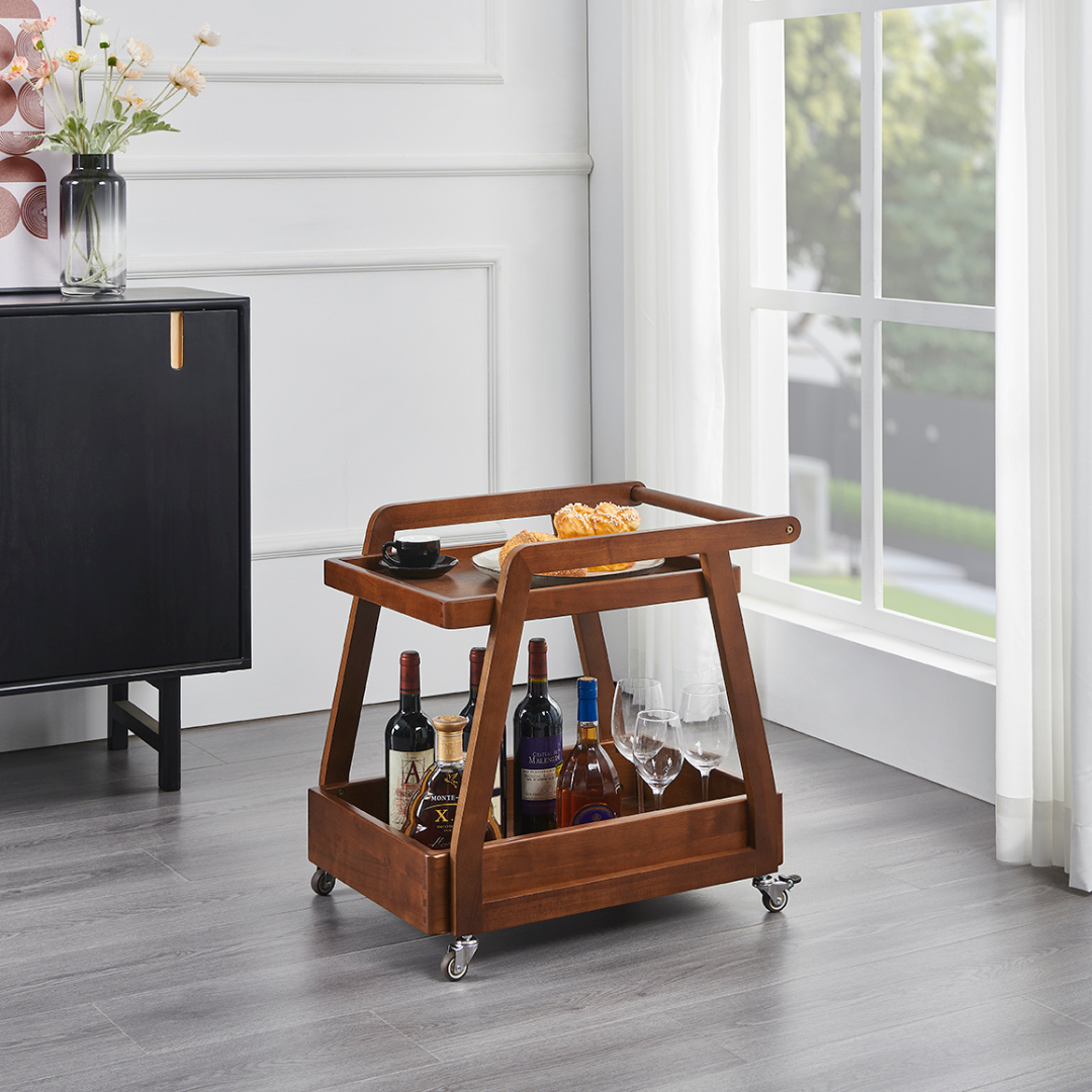 Bàn gỗ quầy bar mini có bánh xe 0027 – Wood bar cart with wheels