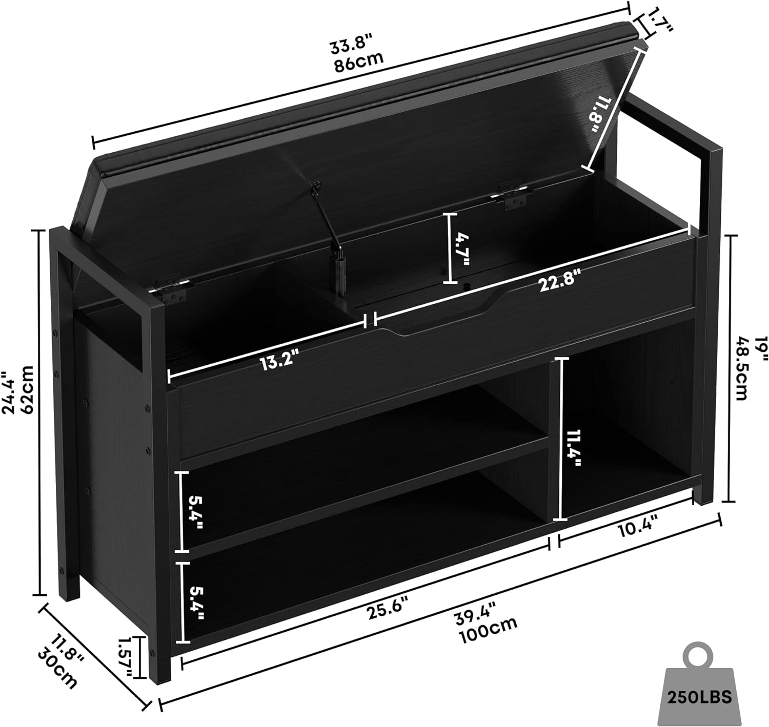Băng ghế tủ giày có nệm màu đen 0011 – Black Cushion Shoes Bench 0011